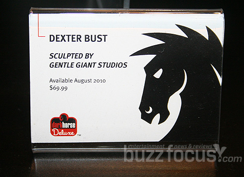 Следующим на очереди смоляной бюст от Dark Horse Comics. Декстер изображен смотрящим на слайд с каплей крови в левой руке, его правая рука с ножом заведена за спину. Как сообщается, бюст прекрасно детализирован, только немного смущает почти детская улыбка Декстера, но возможно таков был авторский замысел - показать двойственность его личности, хотя некоторым наверное не понравиться, что не было выбрано единого направления в композиции. Цена на такой сувенир, как ожидается, составит 69.99 $ и появится он в продаже в августе этого года. К сожалению, фотографии самого бюста нет, лишь такое вот превью:
